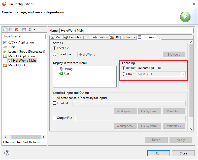 Eclipse Launcher Console Encoding Options