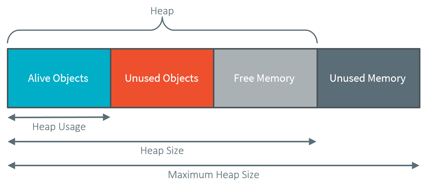 Heap Usage: the amount of the heap currently being used to store alive objects.