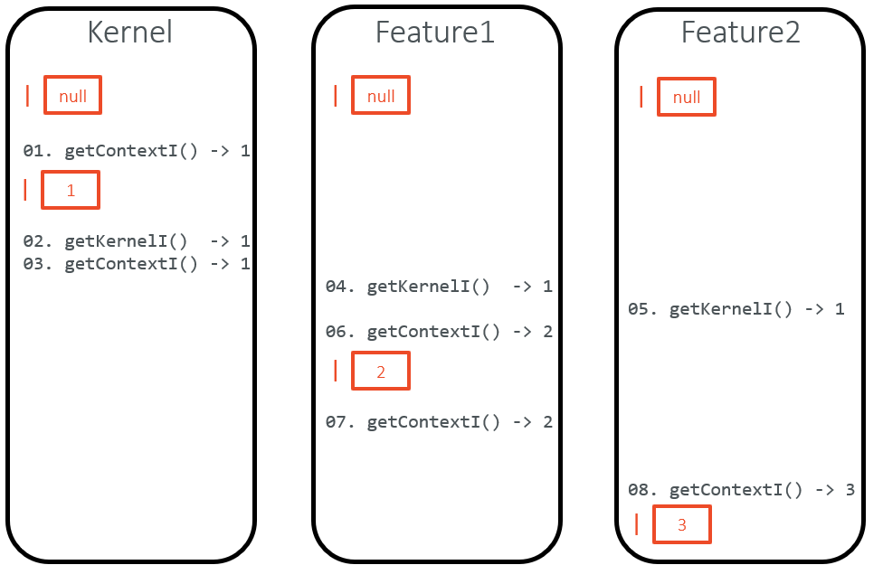 The Kernel can execute a dynamic piece of code (Runnable) in a Feature context by calling Kernel.runUnderContext().