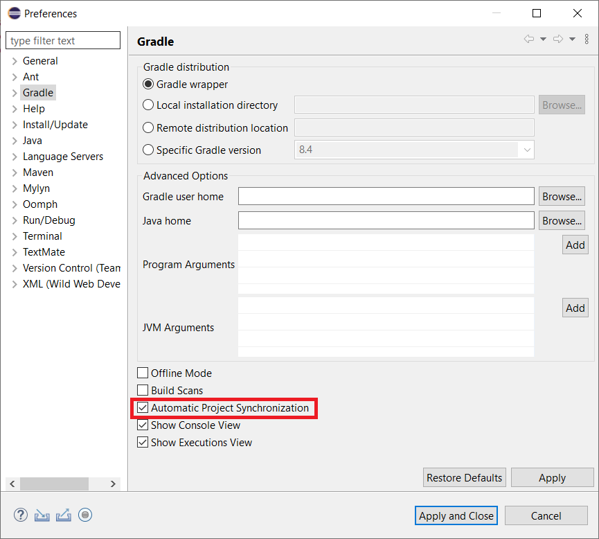 Click on Window > Preferences > Gradle.