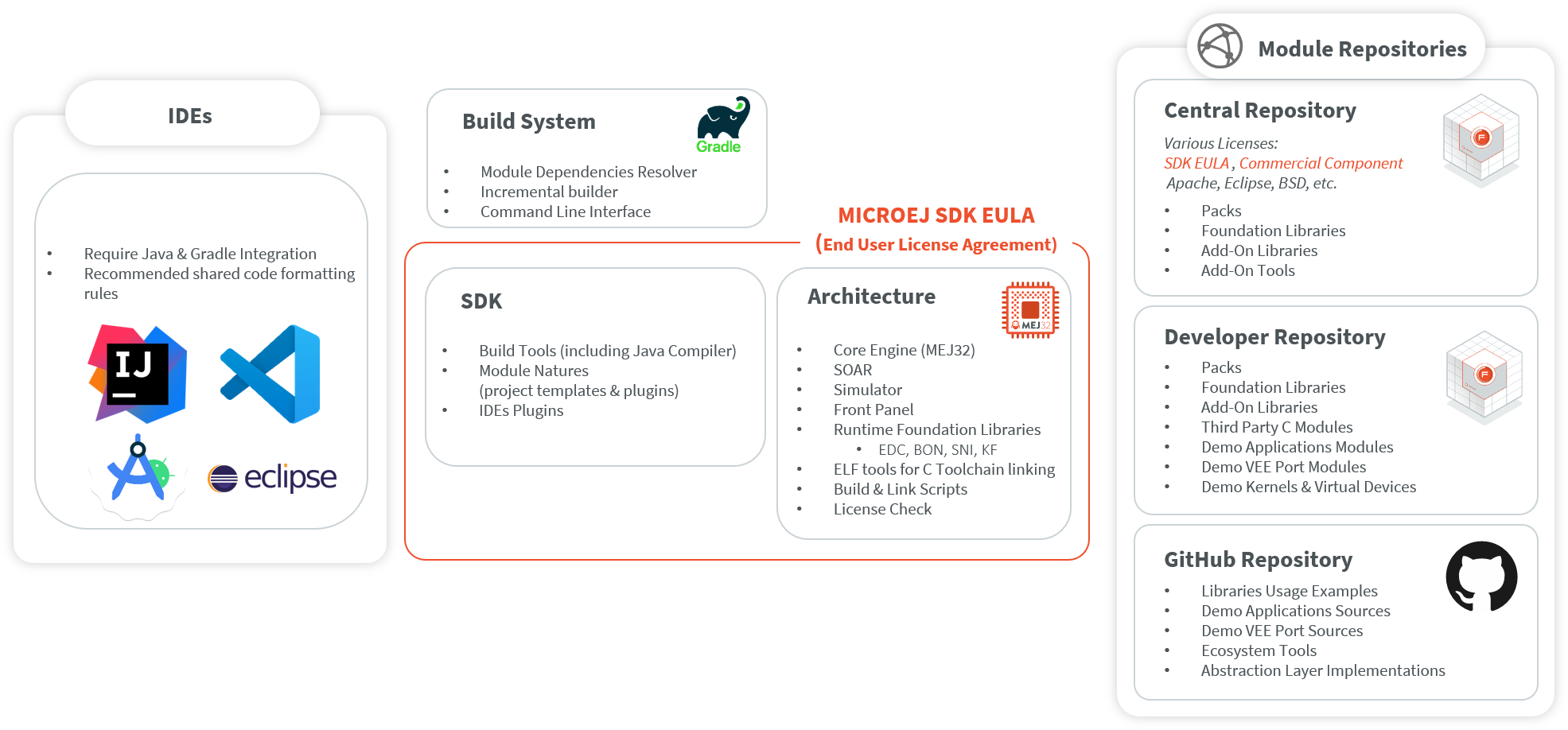 MICROEJ SDK is licensed under the SDK End User License Agreement (EULA). The following figure shows a detailed view of the elements.