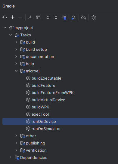 The SDK allows to deploy an Application on a Device thanks to the Gradle runOnDevice task.