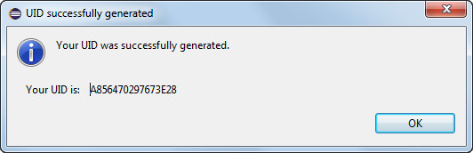 Enter your UID: serial number printed on the USB dongle label (8 alphanumeric char.).