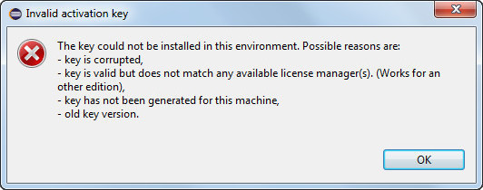 Invalid License Key Error Message