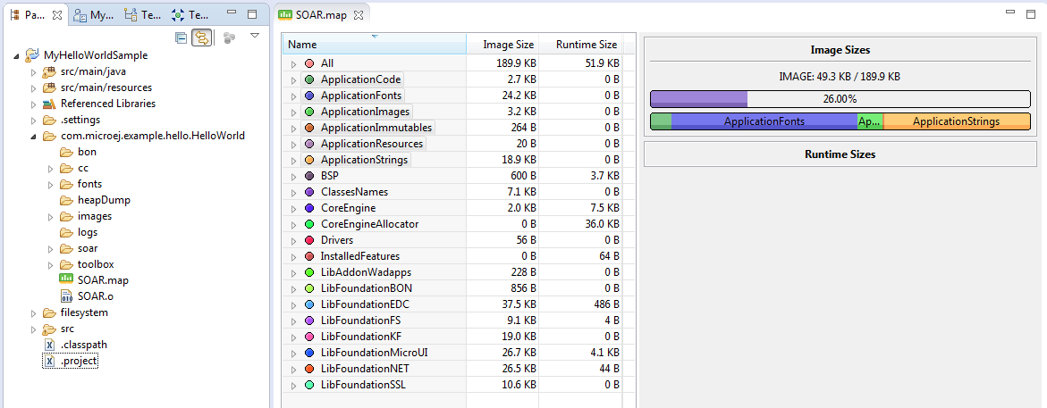 When a MicroEJ Application is linked with the MicroEJ Workbench, a Memory MAP file is generated. The Memory Map Analyzer (MMA) is an Eclipse plug-in made for exploring the map file. It displays the memory consumption of different features in the RAM and ROM.