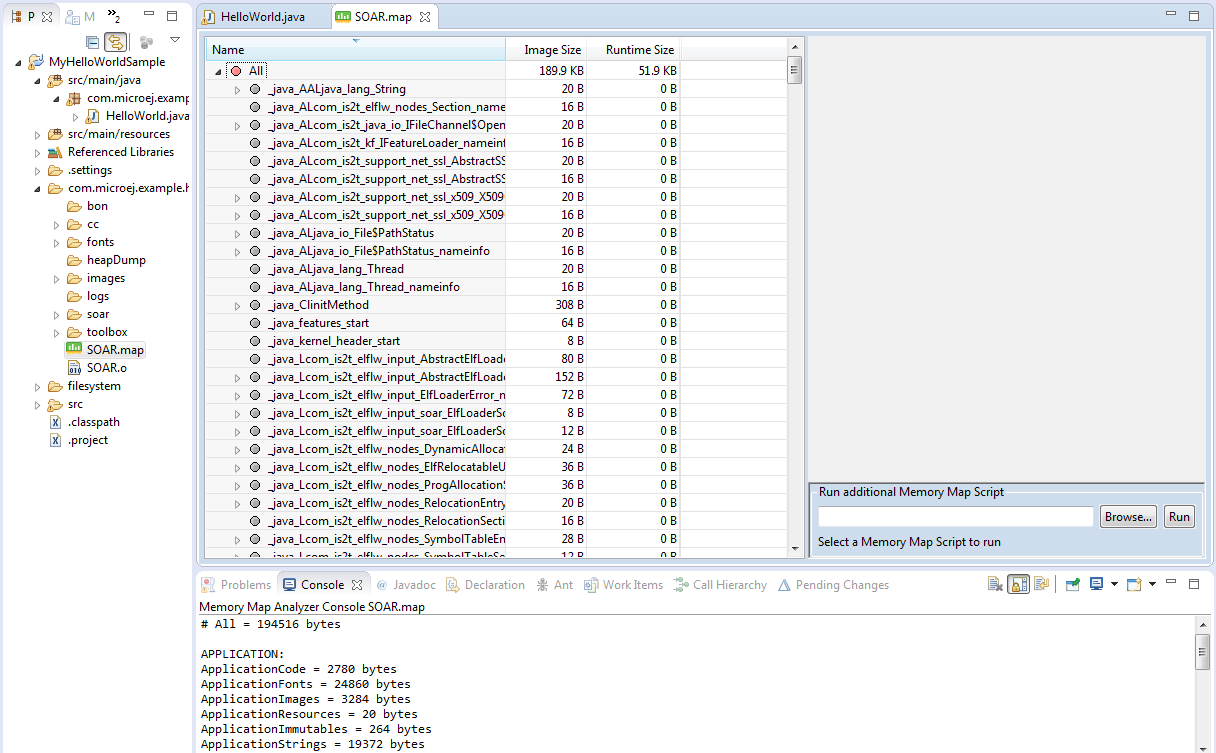 In addition to the executable file, the MicroEJ Platform generates a map file. Double click on this file to open the Memory Map Analyzer.