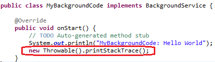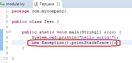 For example, write the following new line to dump the currently executed stack trace on the standard output.