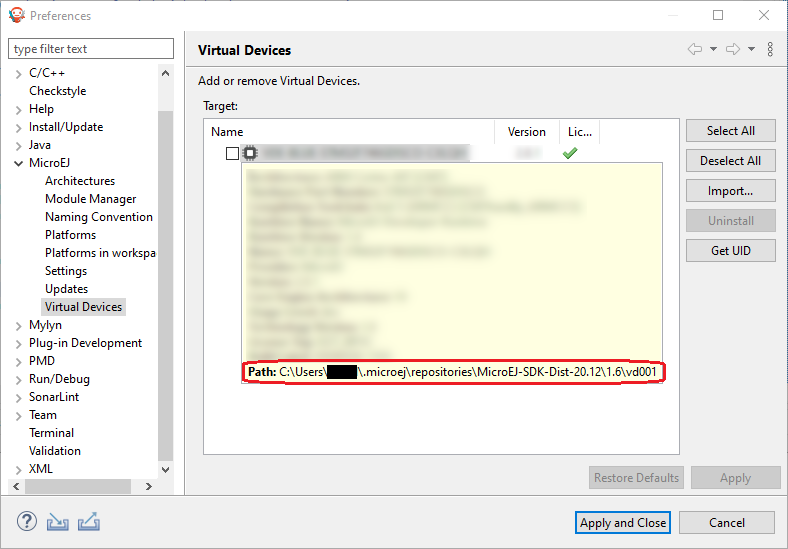 To check where the Kernel executable file of your Virtual Device is located, if you have access to it, go to Window > Preferences > MicroEJ > Virtual Devices, hover over your Virtual Device in the list and wait until an information popup appears. Press F2 to get all the informations and the path to the directory of your Virtual Device should appear in the list.