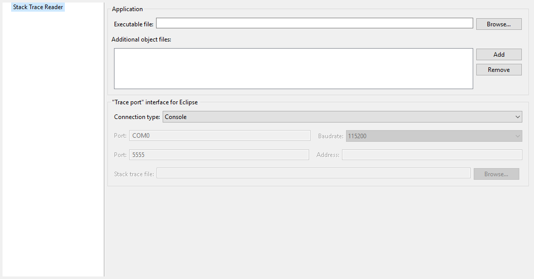 To decode an application stack trace, the Stack Trace Reader tool requires the application executable ELF file.