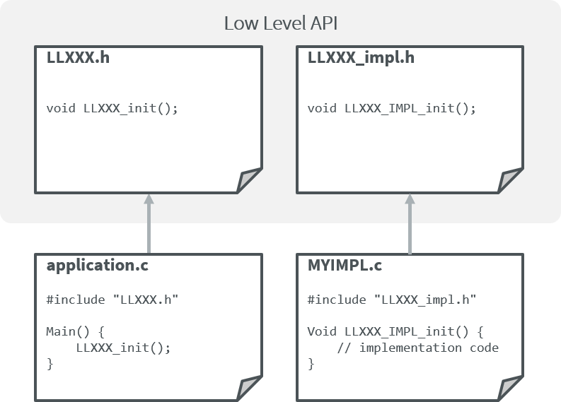 [INTERFACE_NAME].hspecifies the functions that make up the public API of the implementation. In some cases the user code will never act as a client of the API, and so will never use this file.[INTERFACE_NAME]_impl.hspecifies the functions that must be coded by the user in the implementation.