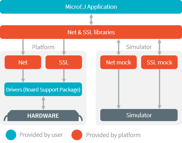 Net and SSL low level parts connects the Net and SSL libraries to the user-supplied drivers code (coded in C).