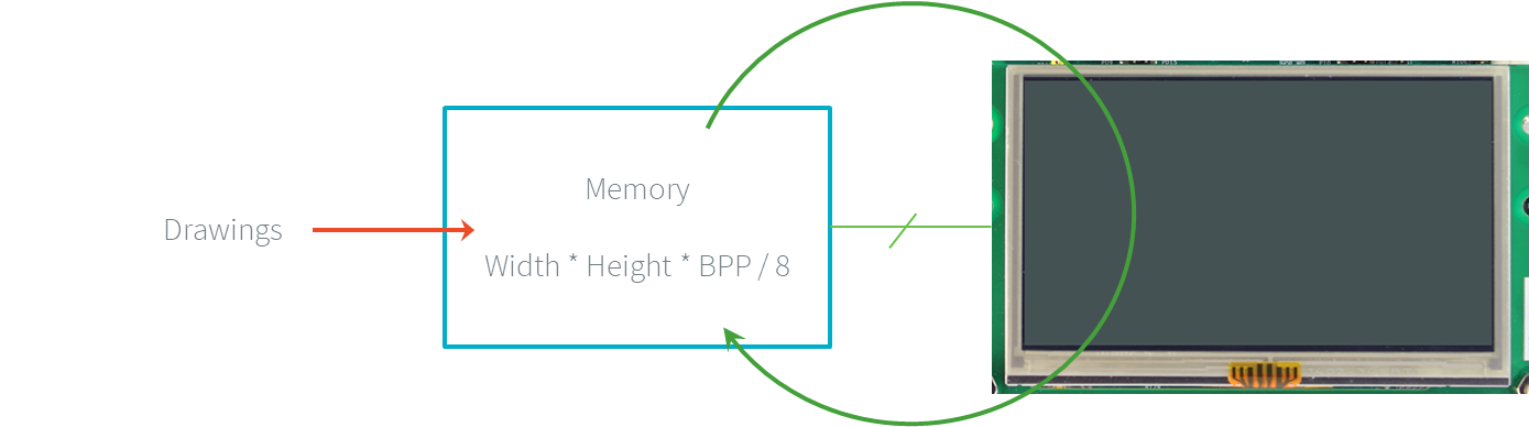 A display is always associated with a memory buffer whose size depends on the display panel size (width and height) and the number of bits per pixel. This memory buffer holds all the pixels the display panel has to show. The display panel continuously refreshes its content by reading the data from a memory buffer. This refreshing cannot be stopped; otherwise, the image fades away. Most of the time, a new frame often appears every 16.6ms (60Hz).
