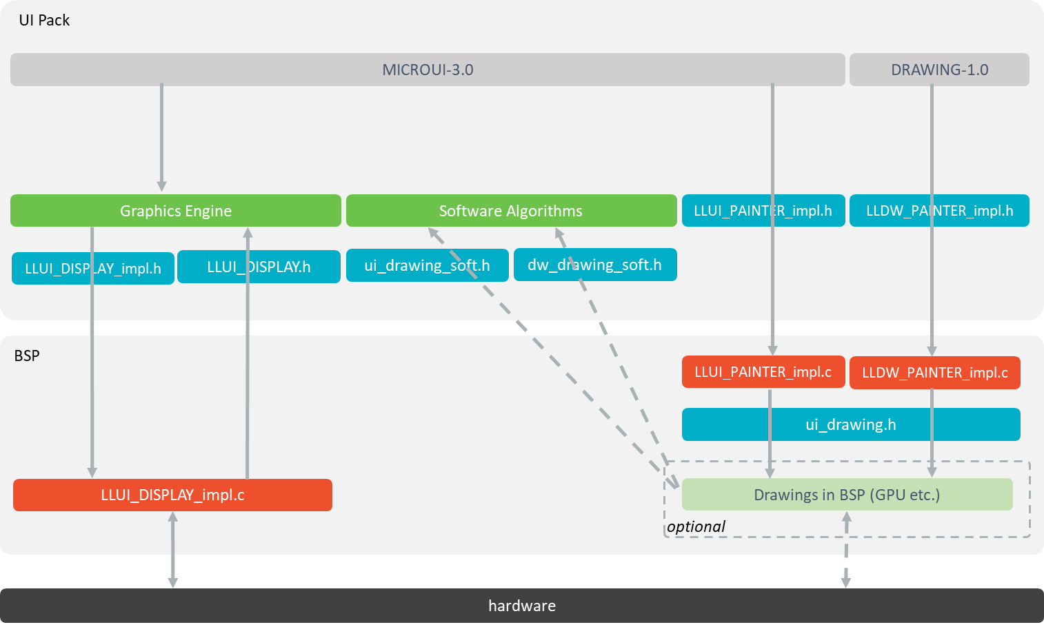 LLUI_DISPLAY_impl.himplementation if standard or custom implementation is chosen (see Dependencies and LLUI_DISPLAY: Display).The MicroUI C module.