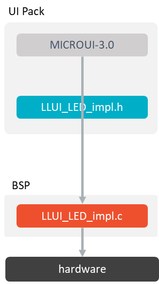 The LED module provides Abstraction Layer APIs that allow the BSP to manage the LEDs. The BSP has to implement these Abstraction Layer APIs, making the link between the MicroUI library and the BSP LEDs drivers.